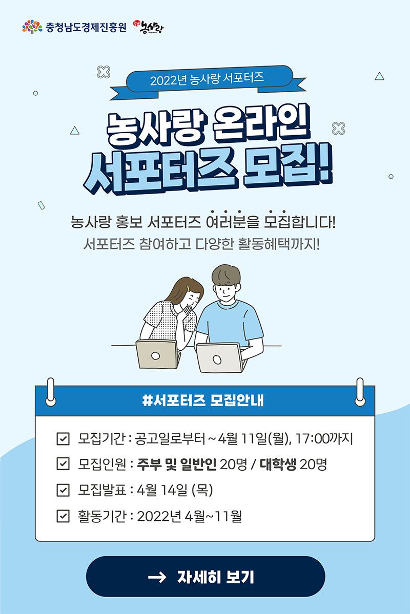 충청남도경제진흥원에서 2022년 농사랑 서포터즈를 모집합니다.