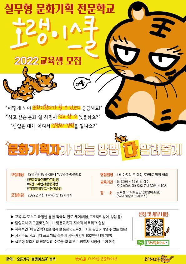 실무형 문화기획 전문학교 <호랭이스쿨> 2022년 교육생 모집