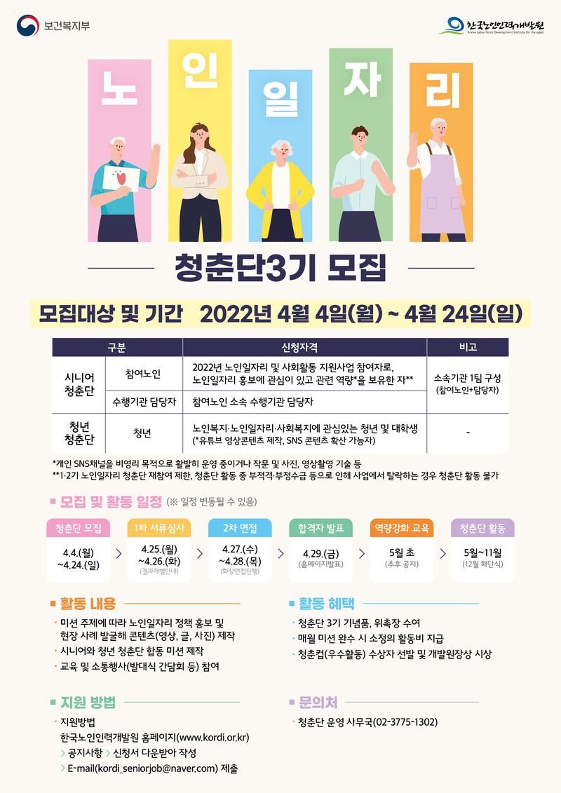 한국노인인력개발원 서포터즈 노인일자리 청춘단 3기 모집