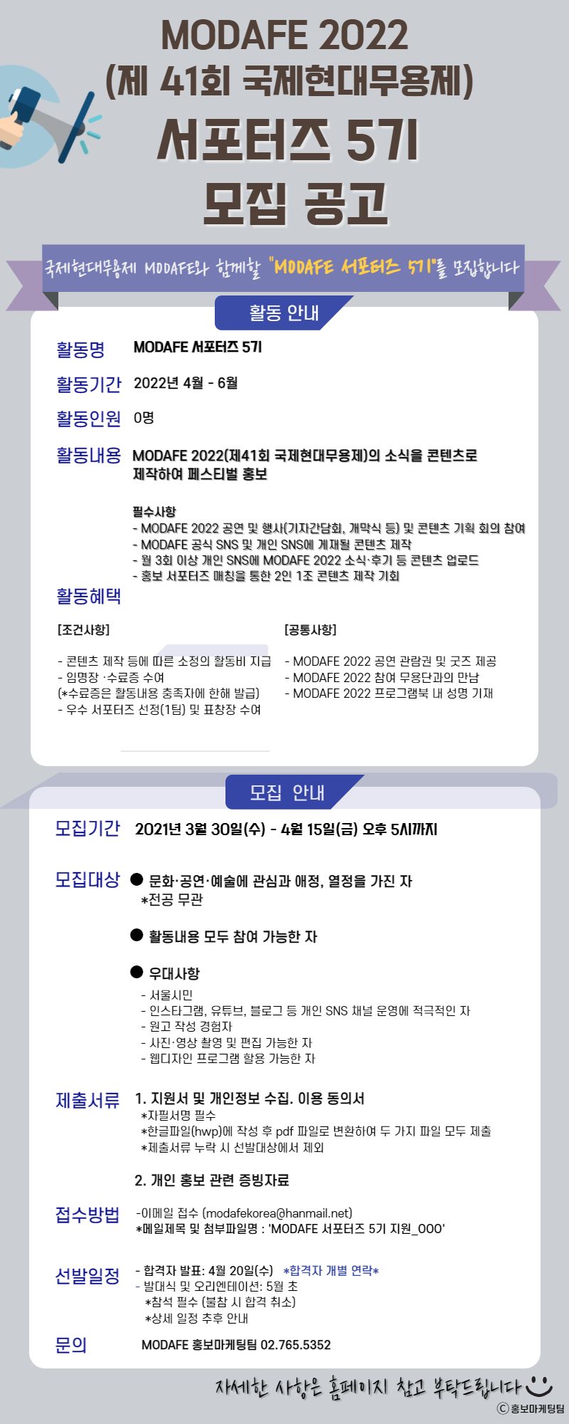 MODAFE 2022 (제41회 국제현대무용제)와 함께할 MODAFE 서포터즈 5기를 모집합니다!