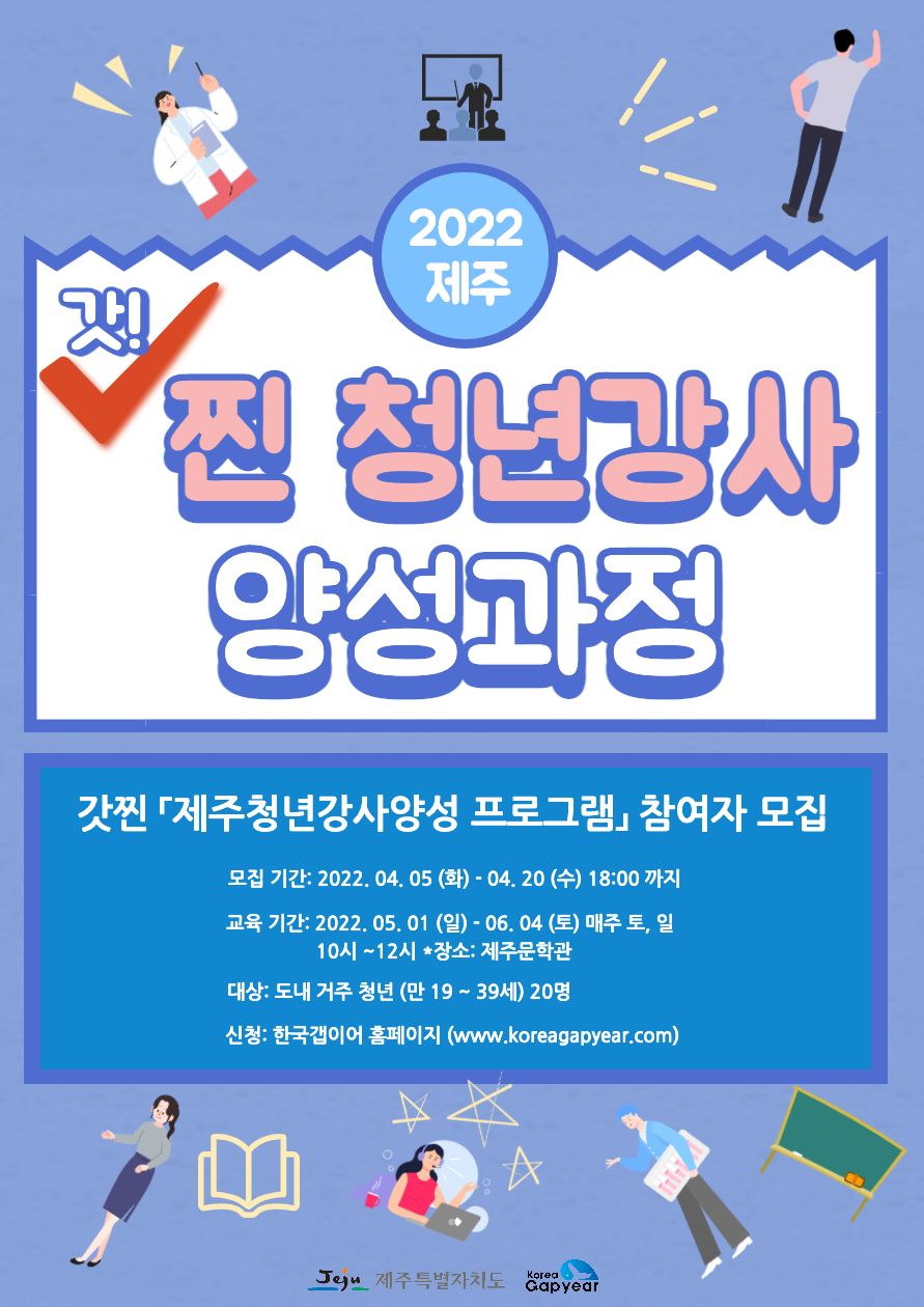 제주특별자치도와 한국갭이어가 <2022 갓!찐! 제주청년강사 양성프로그램>으로 뭉쳤습니다!