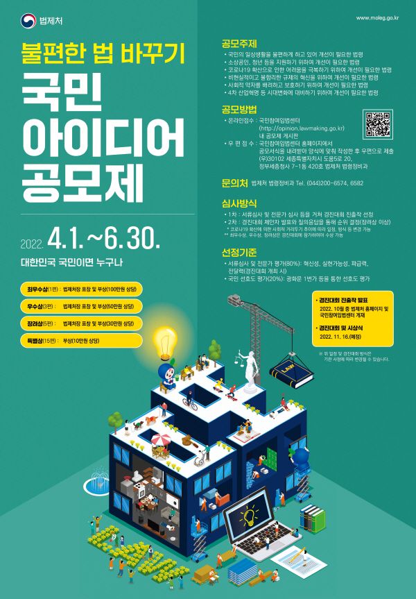 다음과 같이 ‘불편한 법 바꾸기, 국민 아이디어 공모제’를 실시합니다.