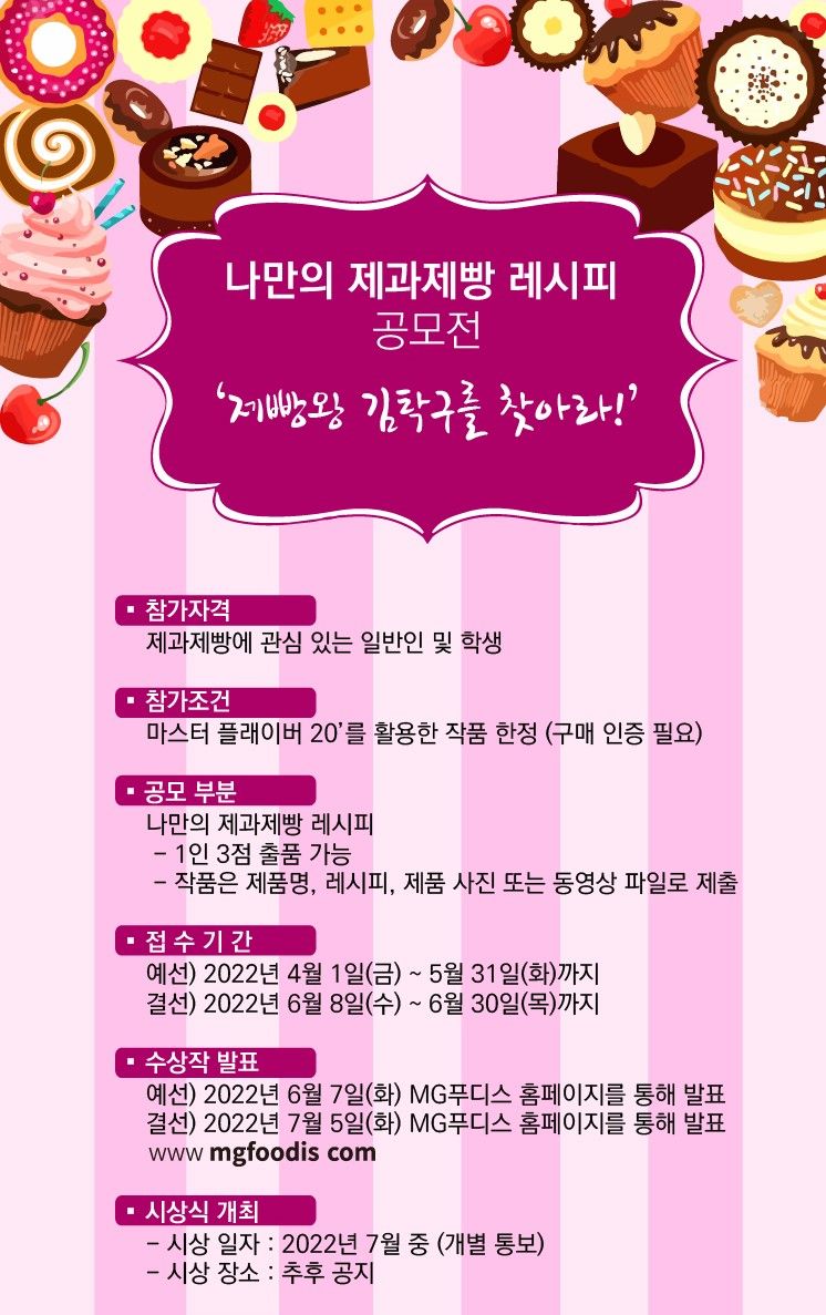 - 결선) 2022년 7월 5일(화) MG푸디스 홈페이지를 통해 발표