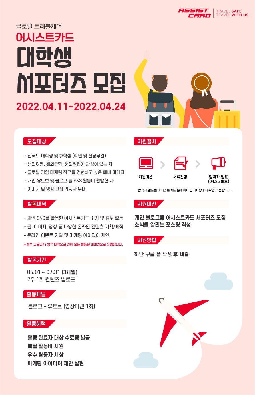 어시스트카드 트래블케어를 알릴 대학생 서포터즈를 모집합니다!