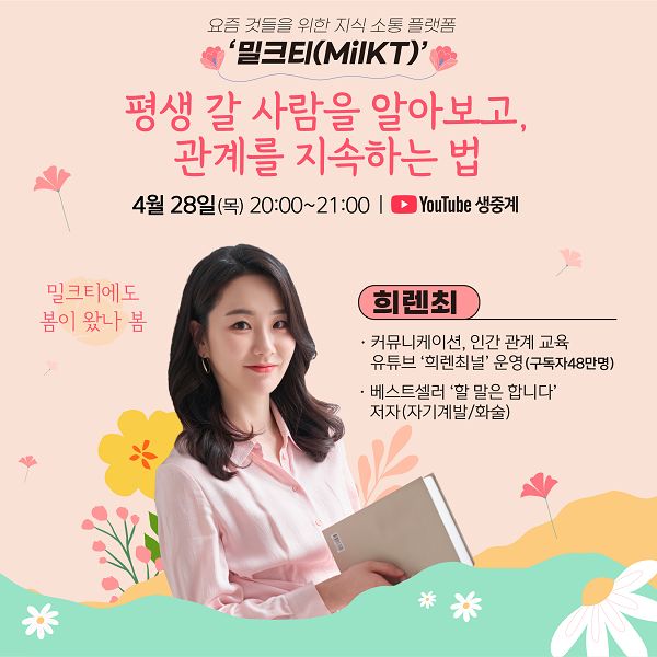 [한국일보] 커뮤니케이션 유튜버 '희렌최'와 함께하는 "요즘것들"의 지식성장플랫폼 밀크티 (무료 강연)