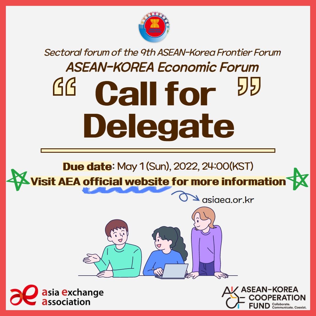아시아교류협회에서는 2010년부터 한-아세안협력기금의 후원으로 민간 차원의 청년 인적교류를 통한 협력 네트워크 기반 구축 및 한-아세안의 공동번영을 위한 AKFF를 진행해오고 있으며, 오는 7월 22일부터 29일까지 대한민국 부산에서 9회 AKFF 분과회의, 경제포럼을 진행합니다.