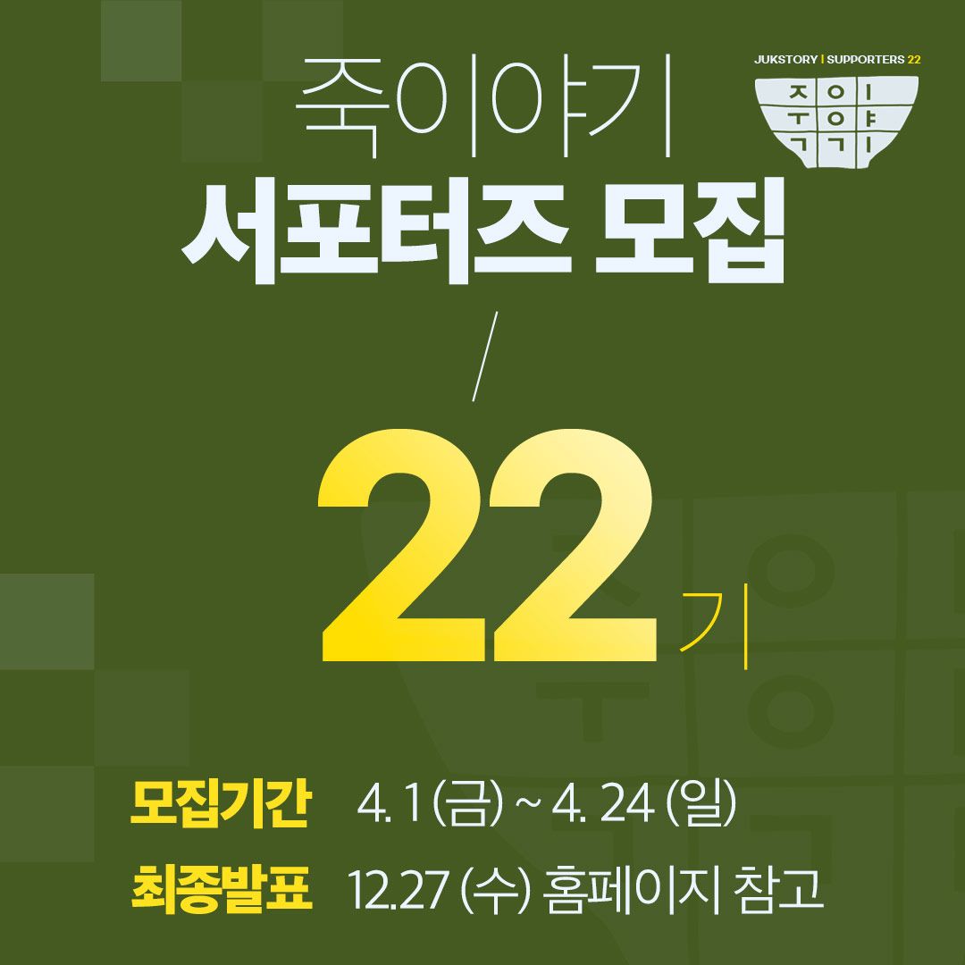 죽이야기 22기 서포터즈 모집