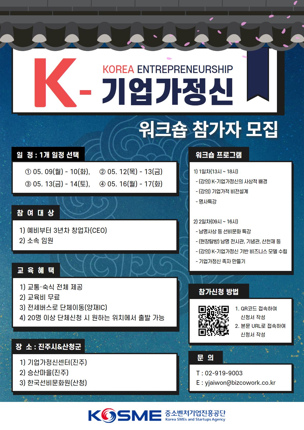 ■ 목적 : 국내 대기업 창업주의 생가 및 출신학교가 위치한 한국 기업가정신의 고향인 진주 일대에서 K-기업가정신 교육을 통해 미래를 이끌어 갈 혁신적인 기업가 양성