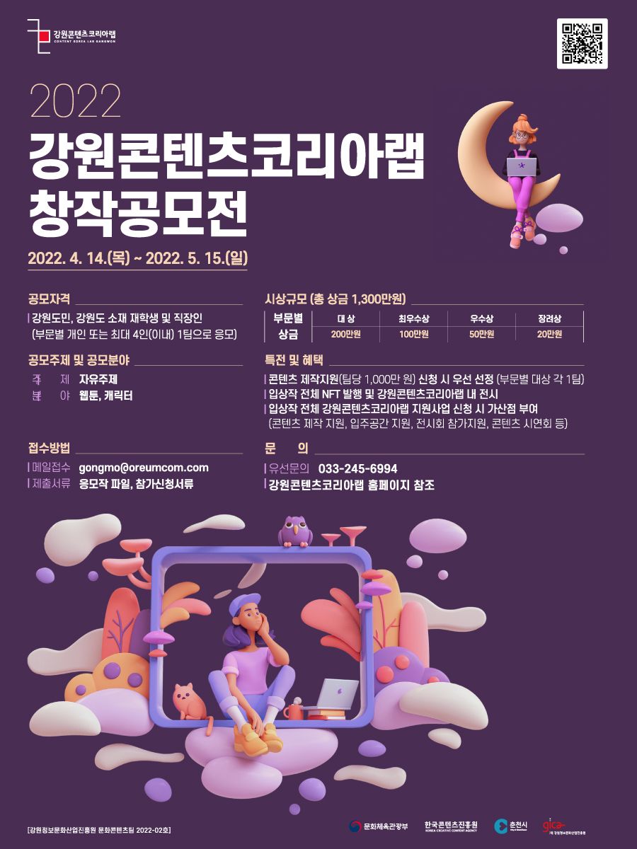 <2022 강원콘텐츠코리아랩 창작공모전>을 다음과 같이 공모하고자 합니다.