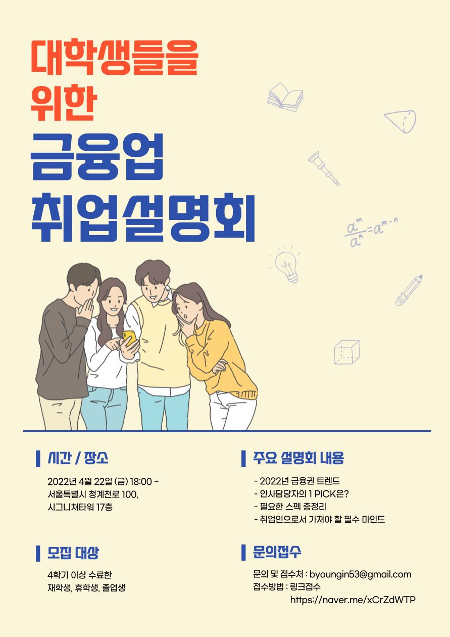 금융이 막연하고 막막한 사람들에게 길잡이가 되어주고 싶은 금융업 취업설명회!