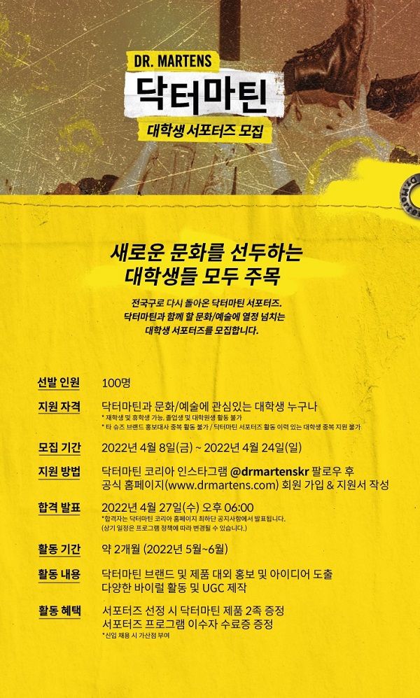 - 서포터즈 선정 시 닥터마틴 제품 2족 증정