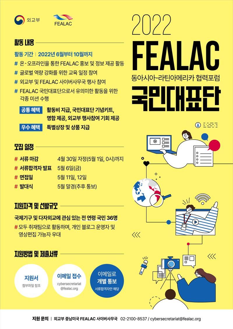 - 외교부 공지사항 '2022 FEALAC 국민대표단 모집' 에서 해당 지원서를 다운로드 받아,