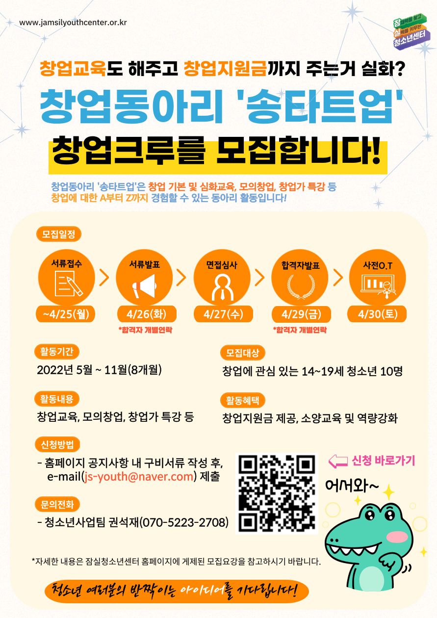 "송타트업(Songpa + Startup)' 창업크루 여러분을 모집하고자 합니다!