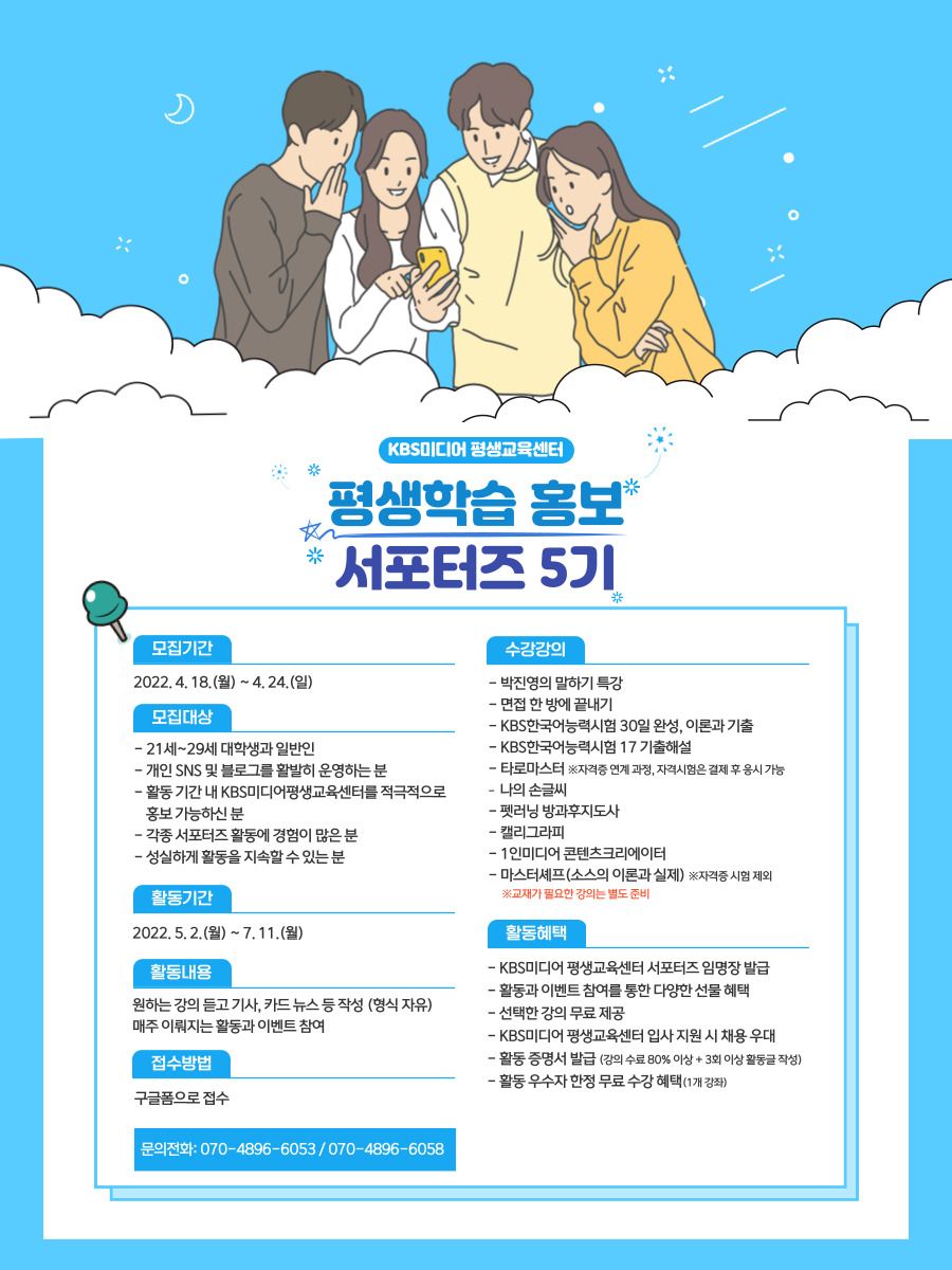 2022년도 평생학습 홍보 서포터즈 5기 KBS미디어평생교육센터 입니다.