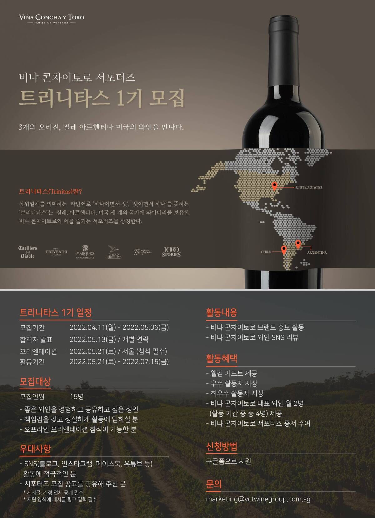 글로벌 와인 기업 비냐 콘차이토로에서 열정 가득한 와인 서포터즈를 모집합니다.