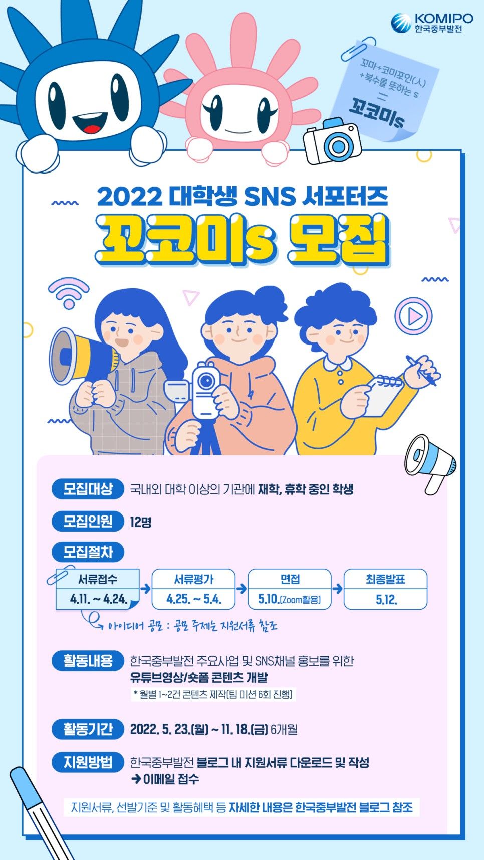 한국중부발전 2022 대학생 SNS 서포터즈 꼬코미s 모집