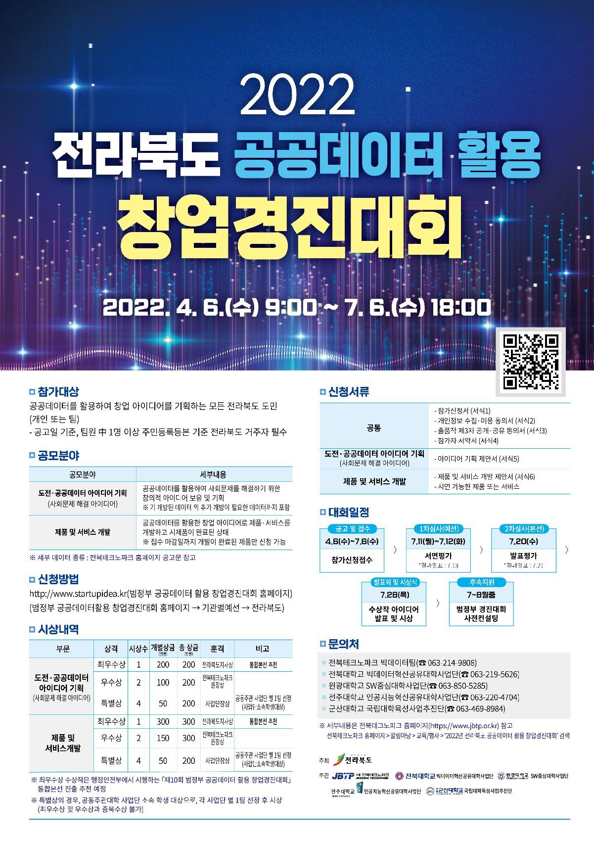 - 2022년 전라북도 공공데이터 활용 창업경진대회 문의