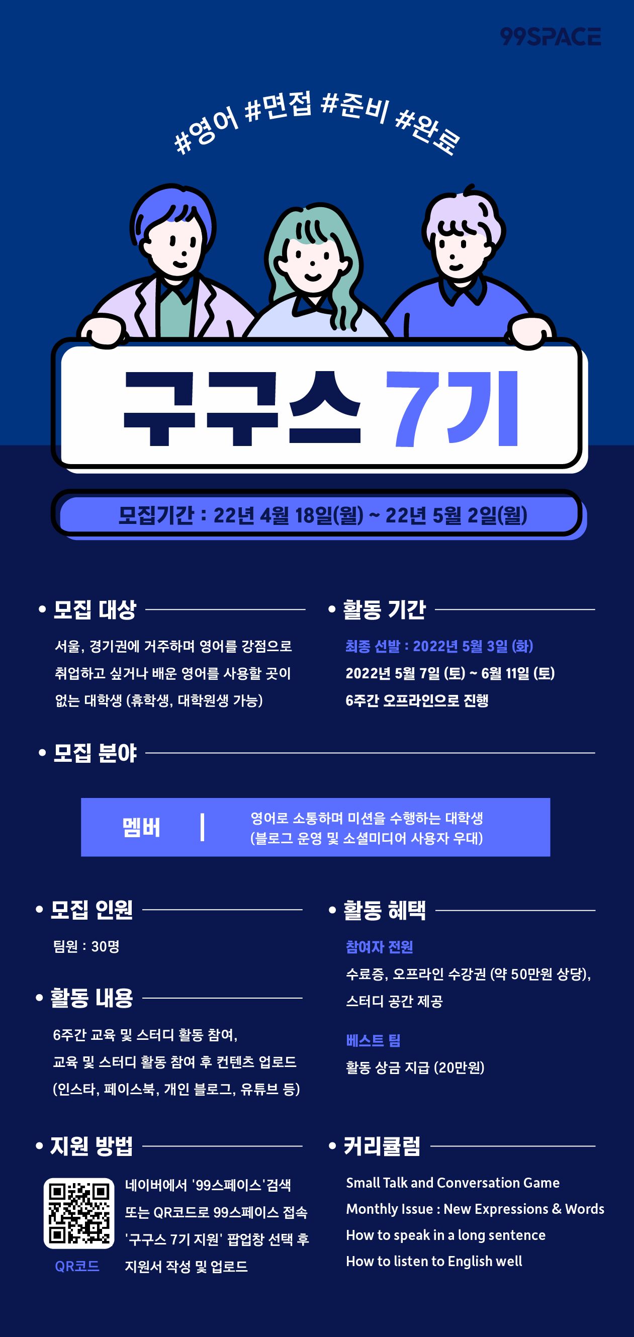 ■ 지원 방법: 99스페이스 홈페이지 내 지원 페이지에서 지원서 작성 및 업로드 (https://99space.kr/supporters/?bmode=view&idx=5925129&back_url=&t=board&page=1)
