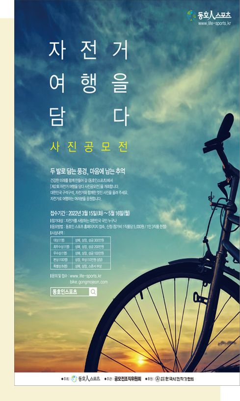 동호인스포츠 창간 1주년을 맞이하여 ‘자전거 여행을 담다 사진공모전’을 진행합니다.