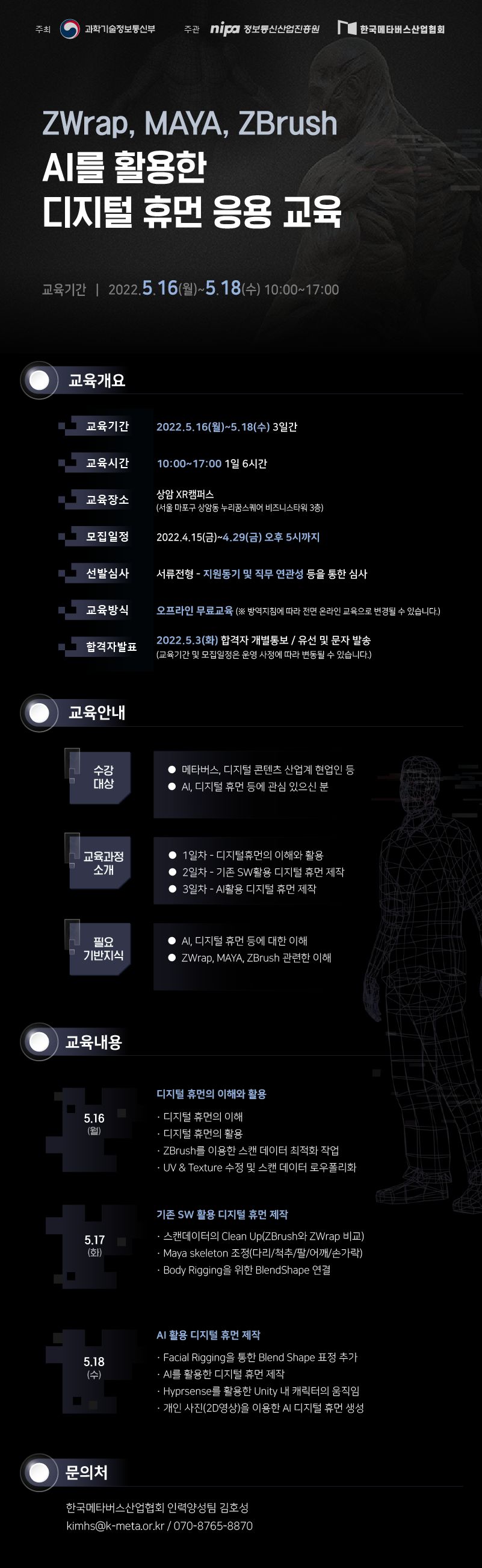 [한국메타버스산업협회] AI를 활용한 디지털 휴먼 응용 교육 (ZWrap, MAYA, ZBrush 활용)
