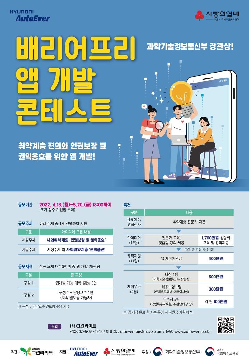 - 참가신청: 배리어프리 앱개발 콘테스트 홈페이지 신청( www.autoeverapp.kr )