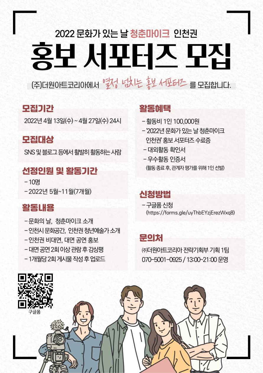 - ‘2022년 문화가 있는 날 청춘마이크 인천권’ 홍보 서포터즈 수료증