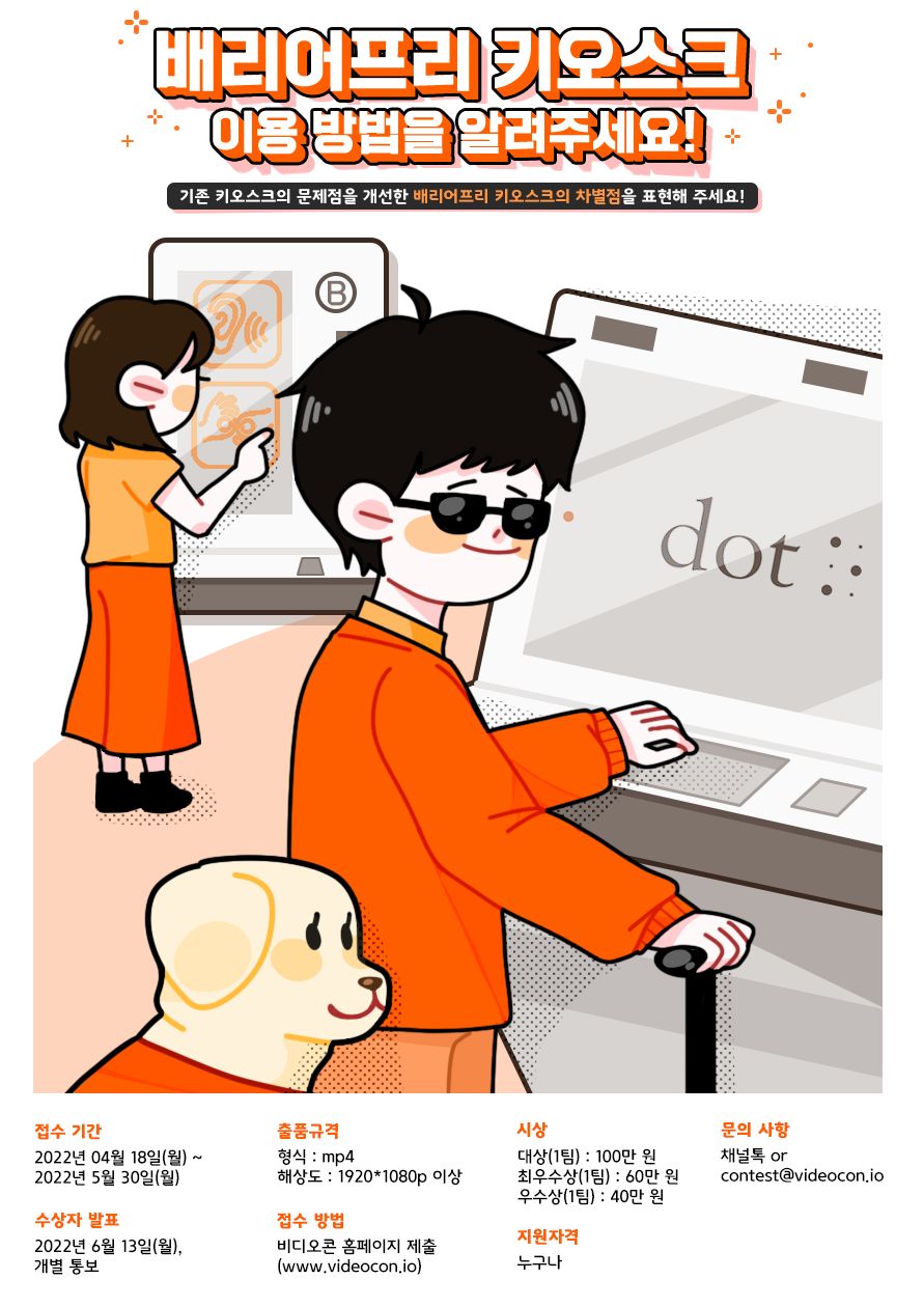 닷의 배리어프리 키오스크는 포용적 디지털 환경 조성을 위한 것으로 누구나 사용할 수 있습니다.장애인과 비장애인이 모두 함께 이용할 수 있는 ‘배리어프리 키오스크’ 이용 방법을 누구나 이해할 수 있는 영상으로 만들어 주세요 : )