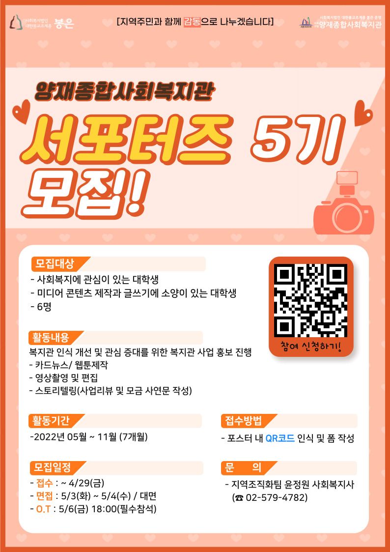 - 양재종합사회복지관의 홍보요정 서포터즈! 서포터즈 5기를 모집합니다!