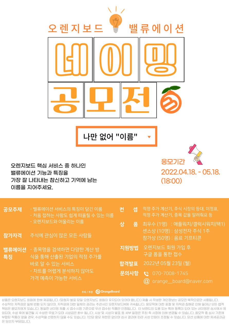 오렌지보드 < 밸류에이션 네이밍 공모전 >