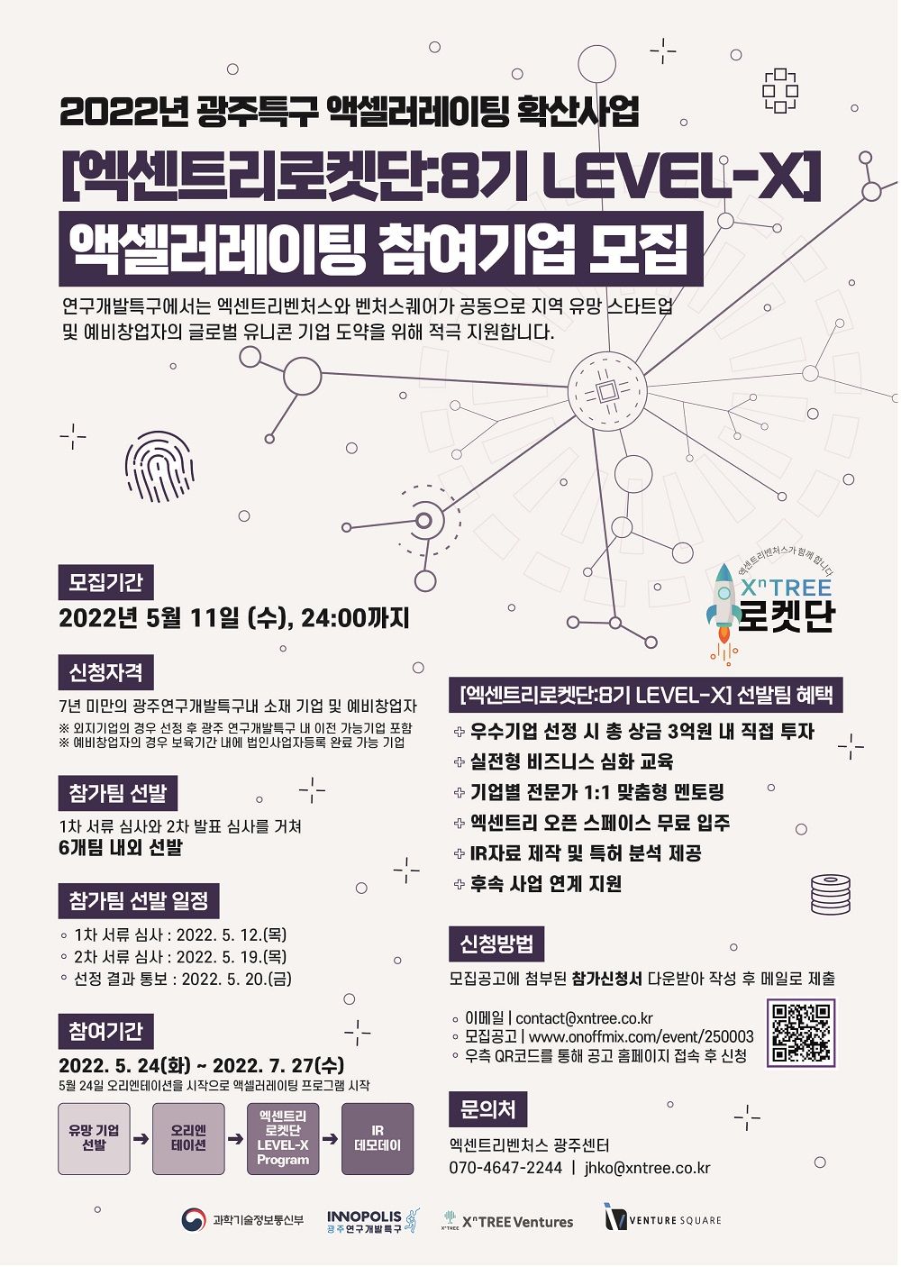 ■ 주 최 : 엑센트리벤처스, 벤처스퀘어, 과학기술정보통신부, 연구개발특구진흥재단, 광주테크노파크, 광주정보문화산업진흥원,