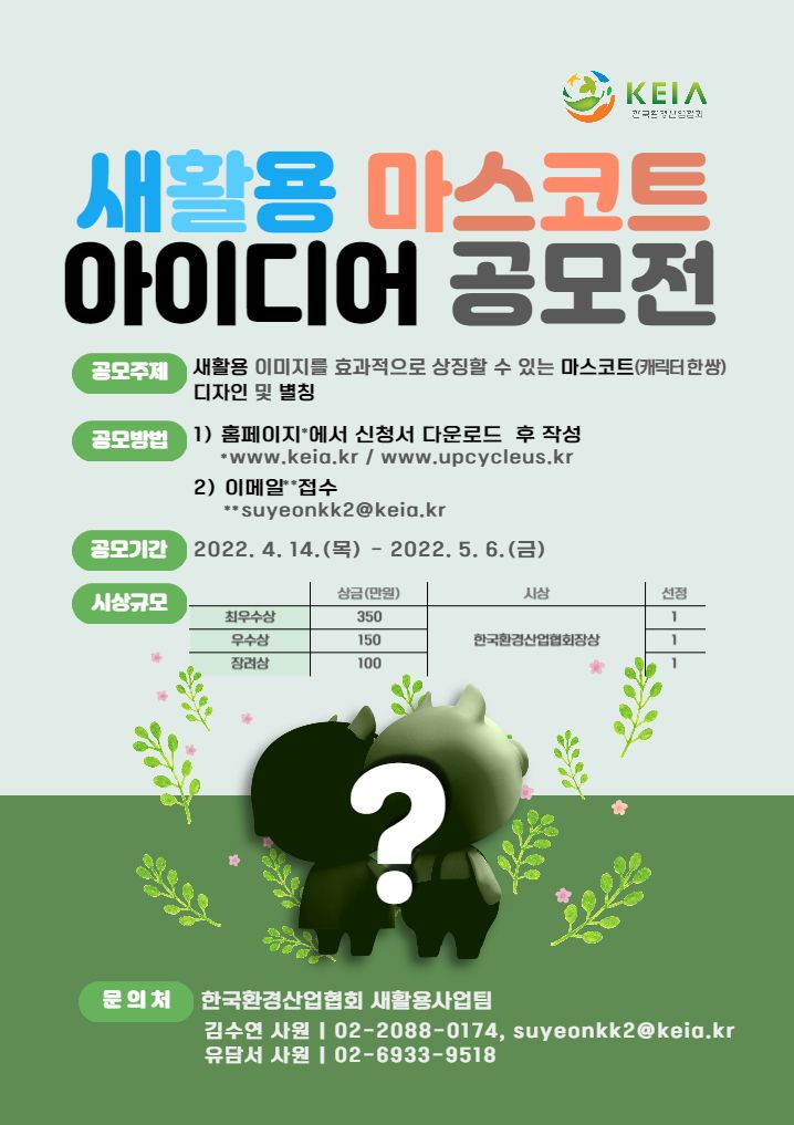 - 새활용 이미지를 효과적으로 상징할 수 있는 마스코트(캐릭터 한 쌍*) 디자인 및 별칭