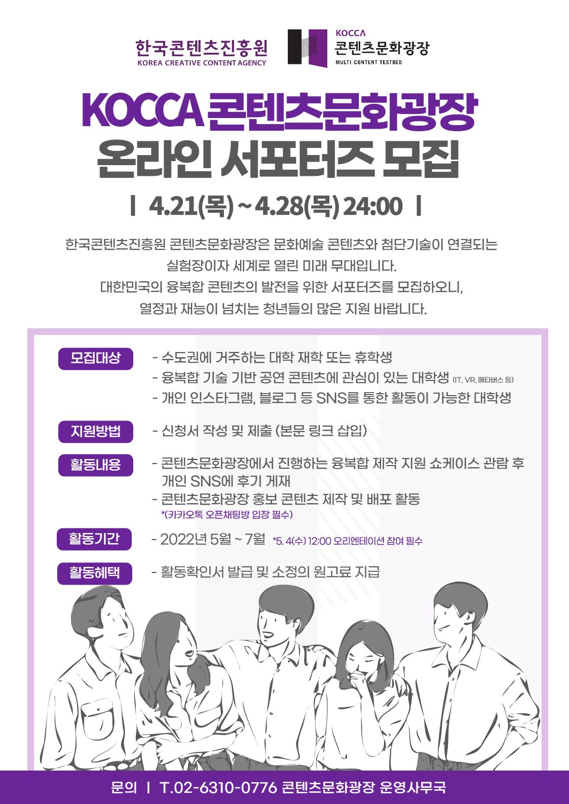 KOCCA 콘텐츠문화광장 온라인 서포터즈 모집(~4.28)