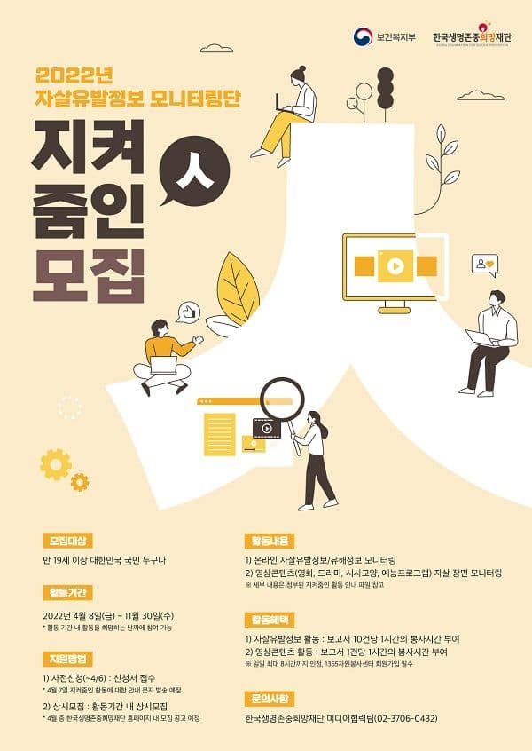 2022년 자살유발정보 모니터링단 지켜줌인(人) 모집