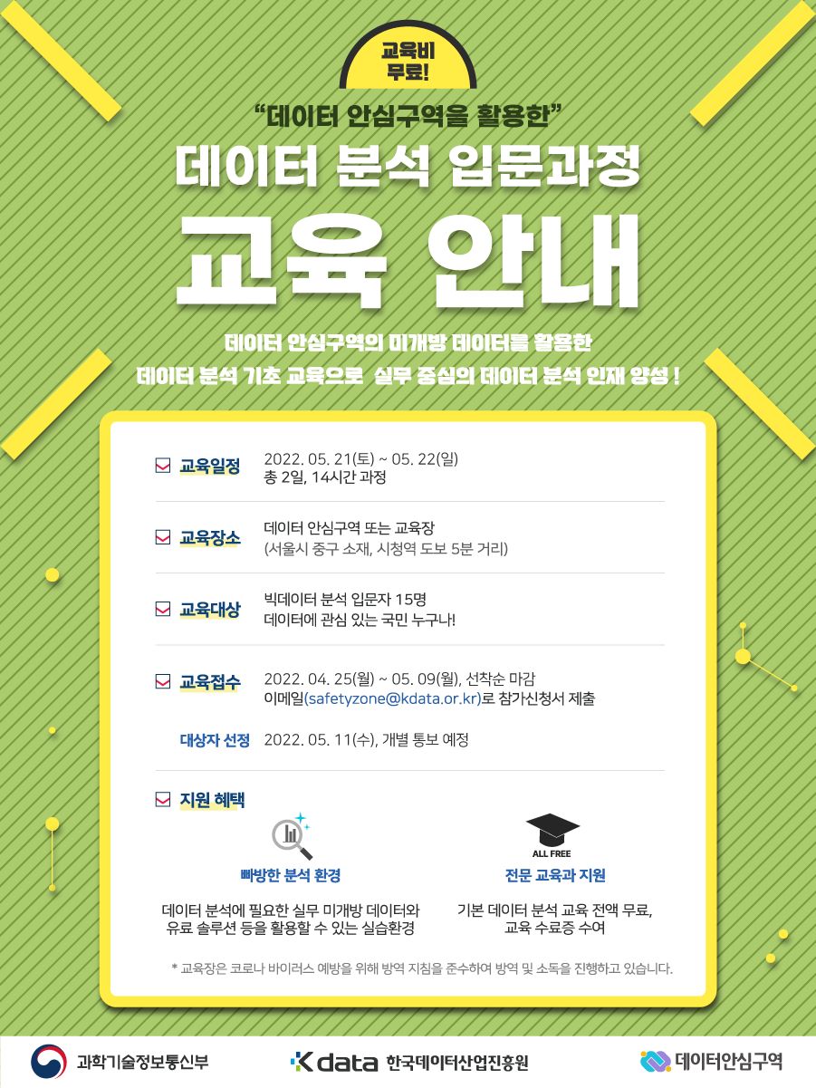 "데이터 안심구역을 활용한" 데이터 분석 입문과정 교육 안내드립니다.