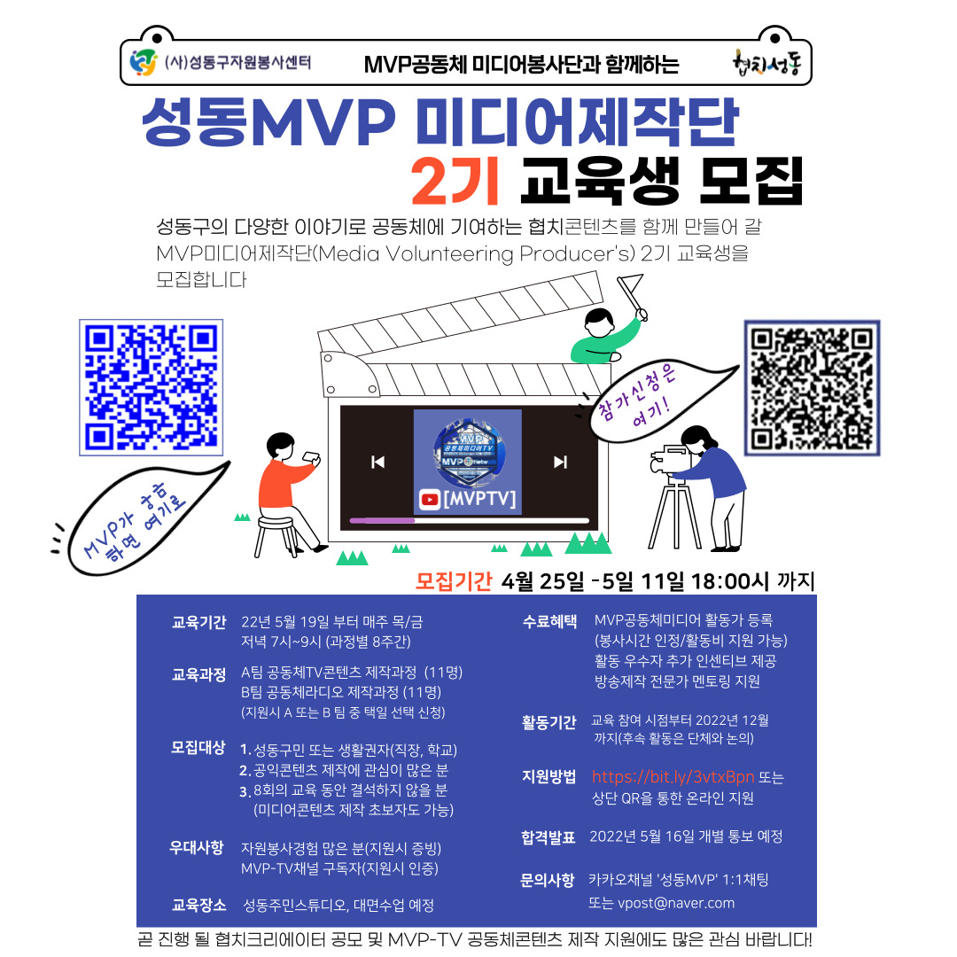 안녕하세요! 성동MVP 미디어제작단 2기 교육생을 모집합니다!