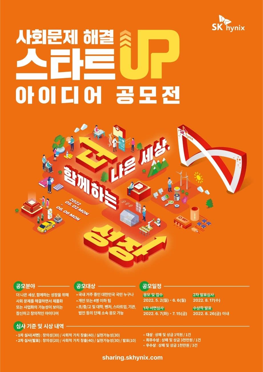 - 더 나은 세상, 함께하는 성장을 위해 ‘사회문제를 해결하면서 제품/사업화가 가능한’ 혁신적이고 창의적인 아이디어