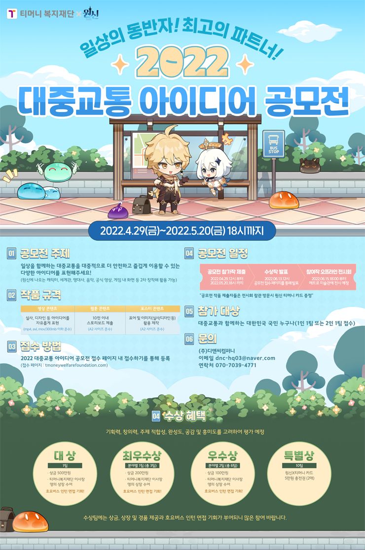 [티머니복지재단 x 원신] 일상의 동반자! 최고의 파트너! 2022 대중교통 아이디어 공모전