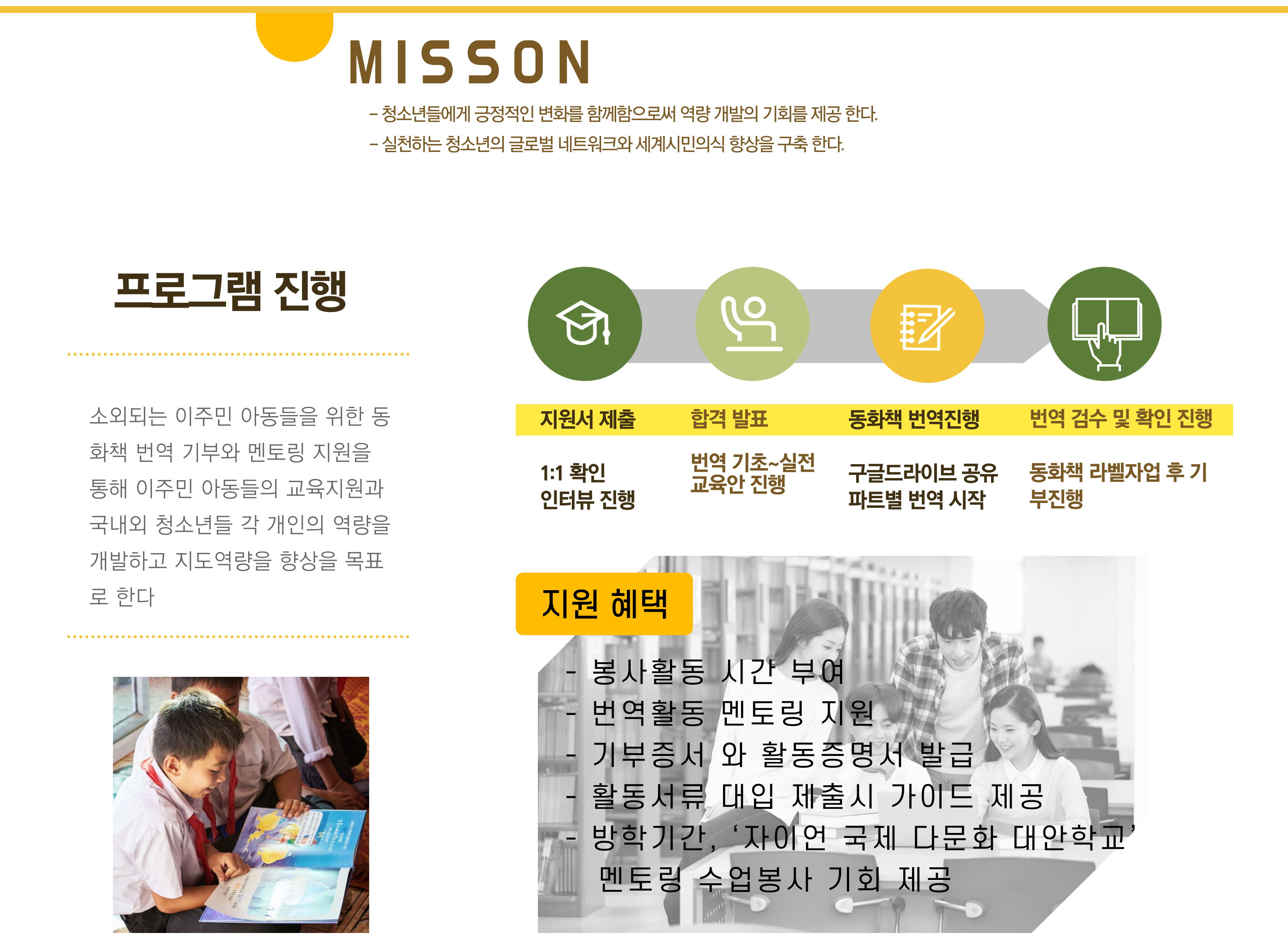 소외되는 이주민 아동들을 위한 동화책 번역 기부와 멘토링 지원을 통해