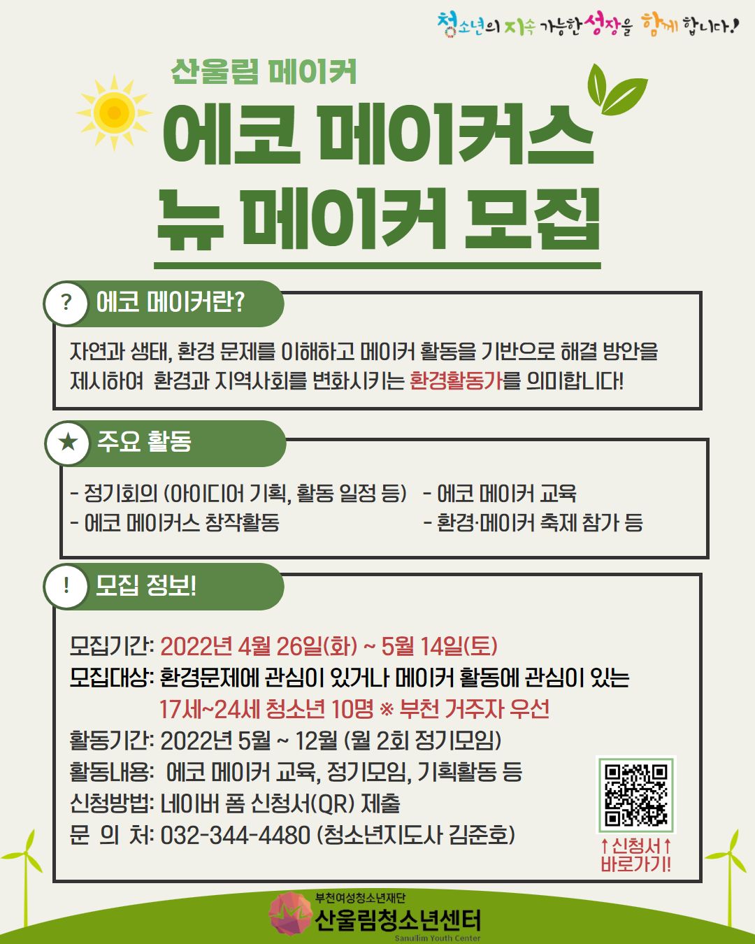 환경문제와 메이커 활동에 관심이 있는 청소년을 모집합니다~!