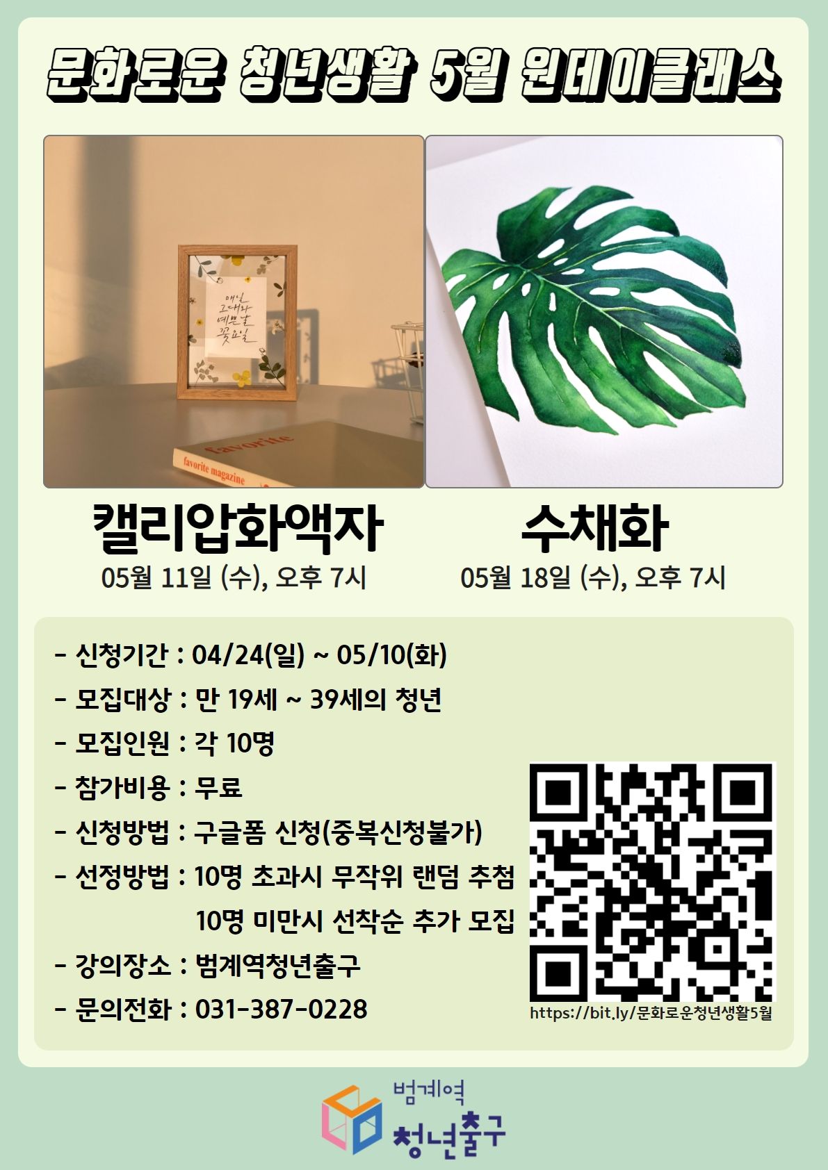무럭무럭 자라나는 5월 문화로운 청년생활 5월 원데이클래스!