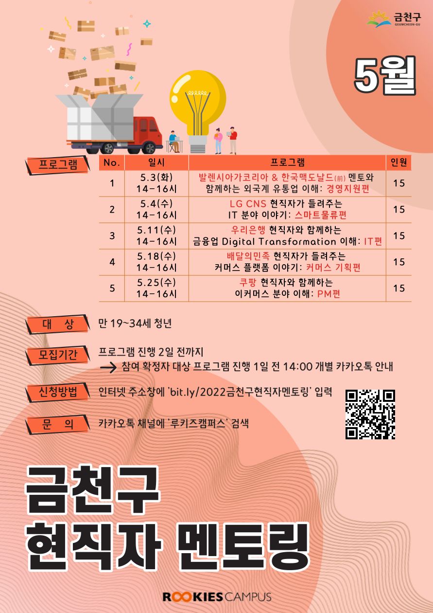 - 5.3(화) 14:00-16:00 발렌시아가코리아 & 한국맥도날드(前) 멘토와 함께하는 외국계 유통업 이해: 경영지원편