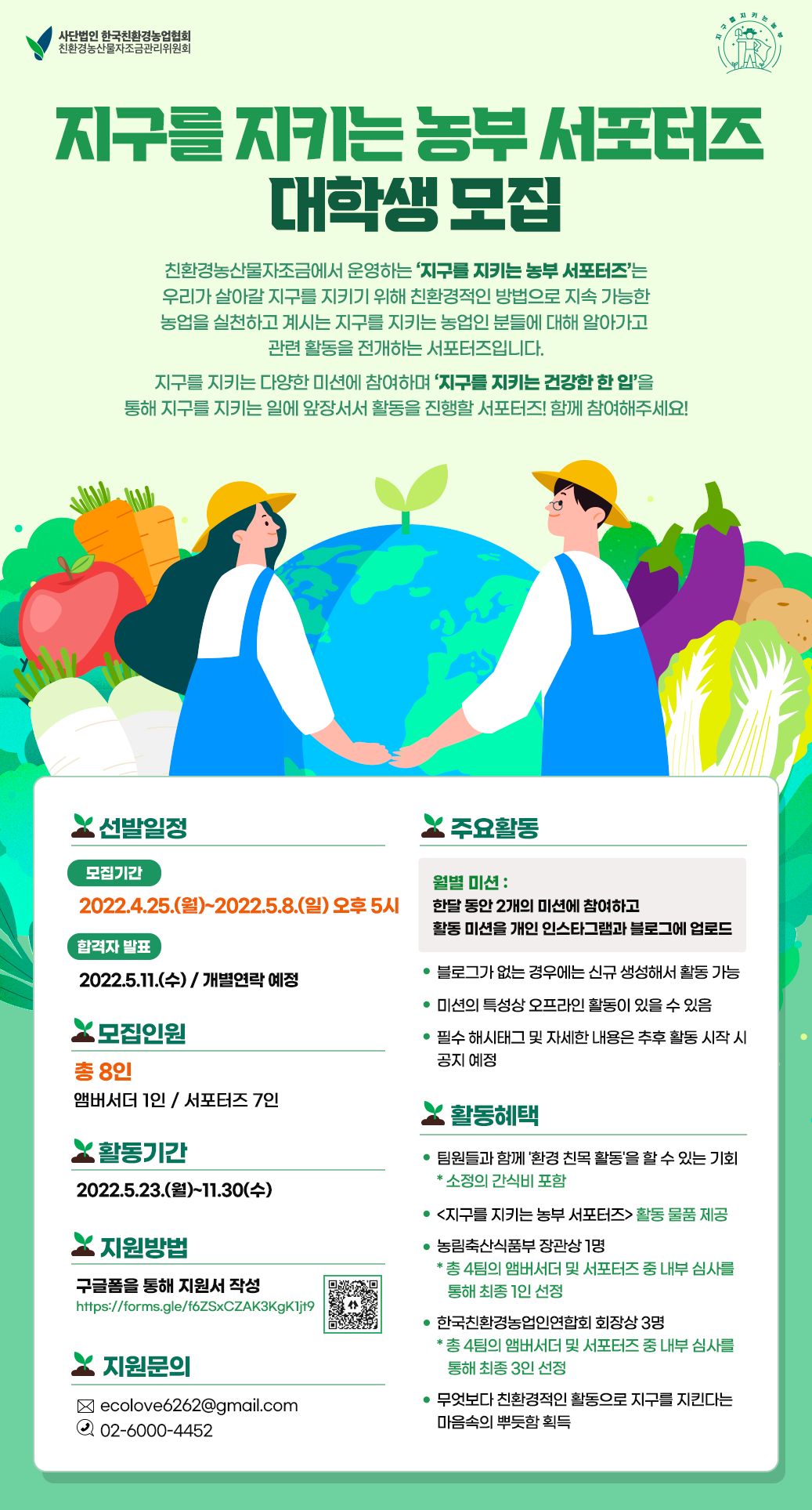 - 지구를 지키는 농부 서포터즈 운영사무국 (02-6000-4452 / ecolove6262@gmail.com)