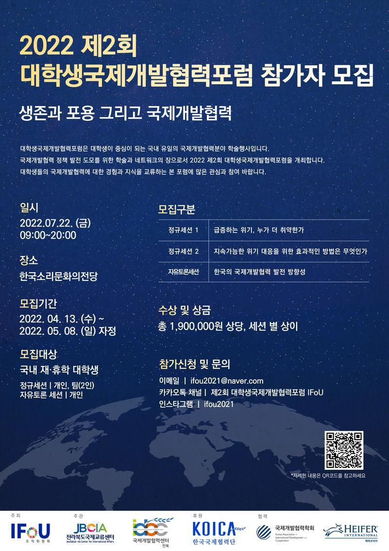 국제개발협력에 대한 경험과 지식을 교류하는 본 포럼에 대학생분들의 많은 참여와 관심 부탁드립니다.