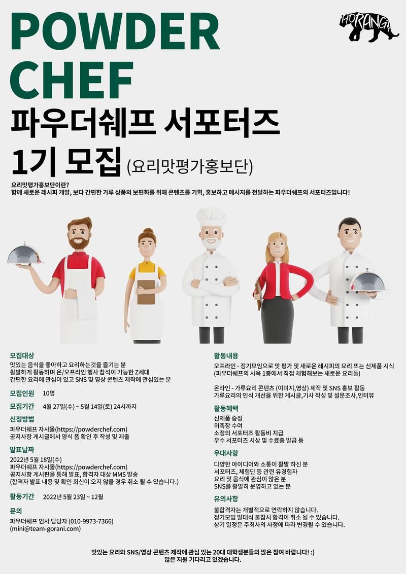 안녕하세요 간편한 그 맛의 비결! 맛능가루의 회사인 파우더쉐프에서 요리맛평가홍보단을 모집합니다!