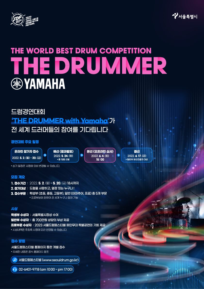 - 서울드럼페스티벌 운영사무국 (02-6401-9718)