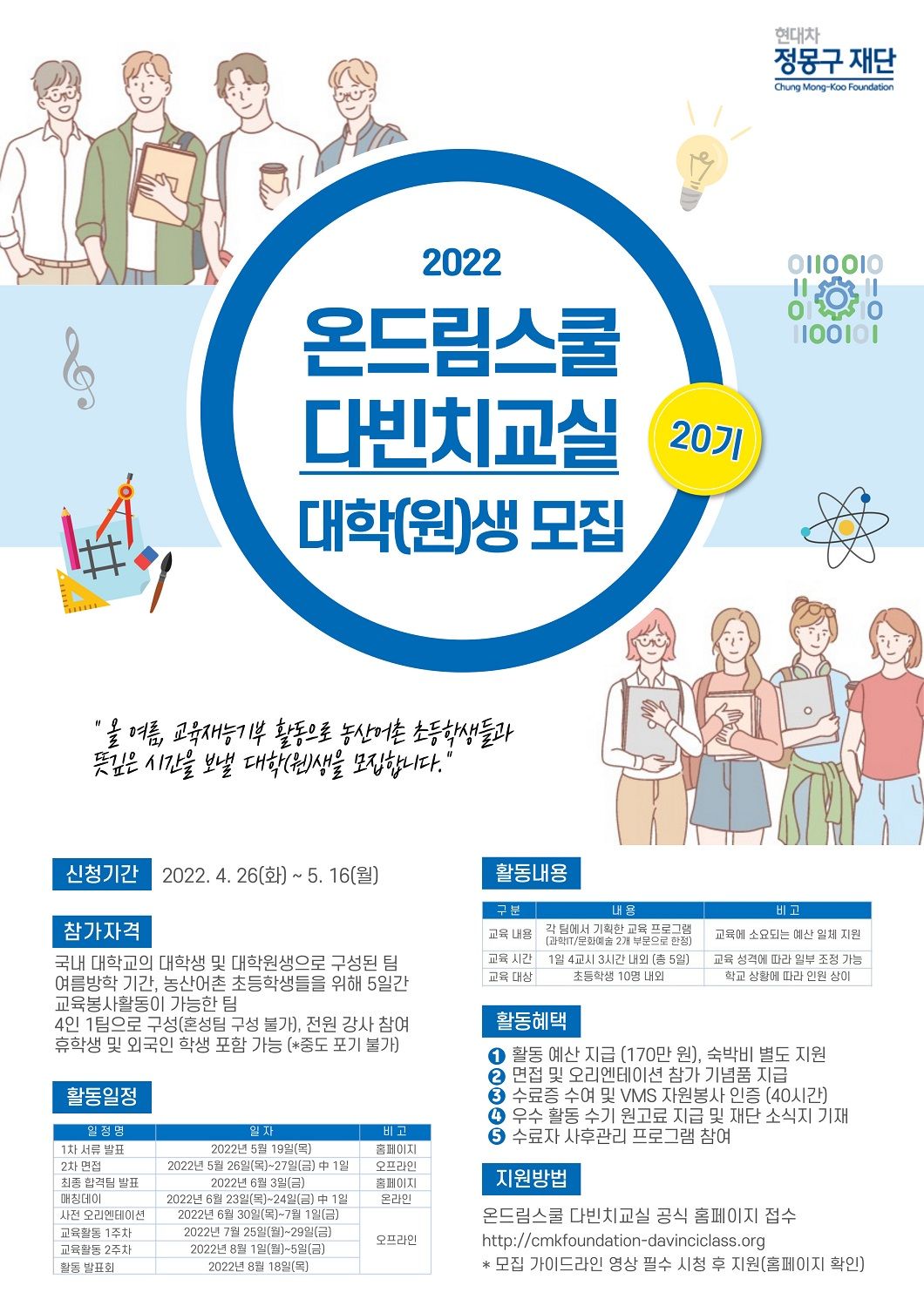 문의처: 2022 현대차 정몽구 재단 온드림스쿨 다빈치교실 운영사무국