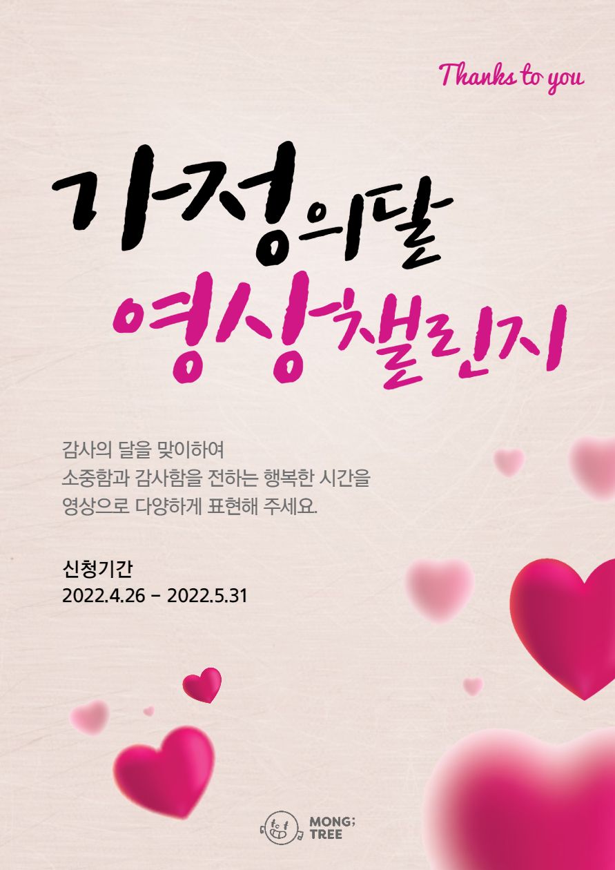 다가오는 5월 가정의 달을 맞이하여, 영상 챌린지를 진행합니다.