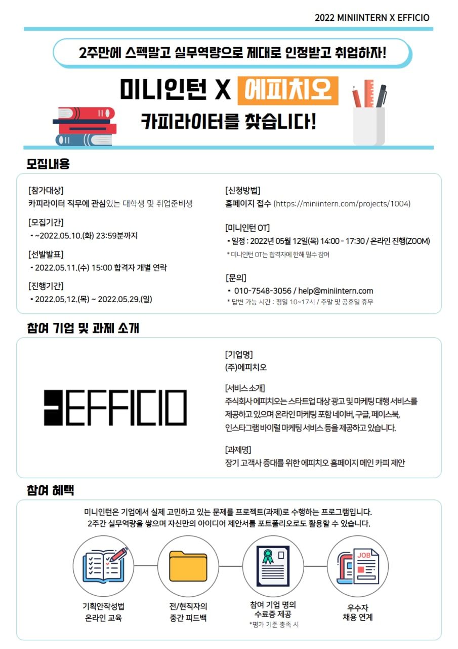 - 미니인턴 신청 : https://bit.ly/3OJPV7Z