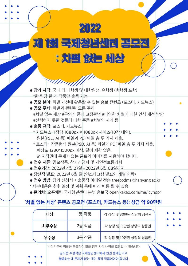 - 공모전 수상작은 국제청년센터에서 인권 캄페인으로 활용하는데 문제가 없는 개인 창작 작품이어야 합니다.