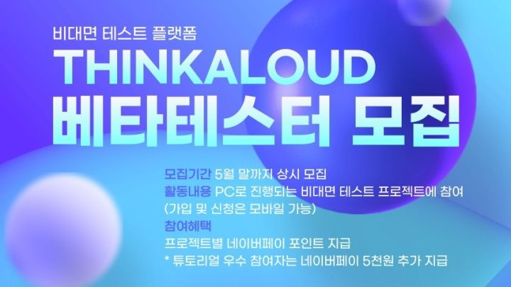 비대면 테스트 플랫폼 ThinkAloud가 서비스 출시에 앞서 베타테스트 프로젝트에 참여해주실 분들을 모집합니다.